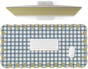 Nasdalgias Cute Blue Green Scalloped Desk Mat Checkered Large Mouse Pad Kawaii Vintage Farmhouse-Inspired Cottagecore Office Desk Decor Stitched Nonslip Pad for Computer Keyboard & Mouse 31 * 15.7in