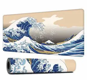 Y YIHANGBEST Hokusai's Great Wave Large Gaming Mouse Pad Japanese Woodblock Mount Fuji and Wave Art Long Mousepad Keyboard Mat for Desk,Office,Home 35.4"X15.7"