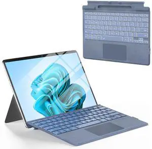 Surface Pro Keyboard Blue, Wireless Ergonomic Type Cover for Microsoft Surface Pro 11/10/9/8/X 13 inch, Ultra-Slim Portable Magnetic Bluetooth Keyboard with 7 Color Backlit, Pen Holder, Trackpad
