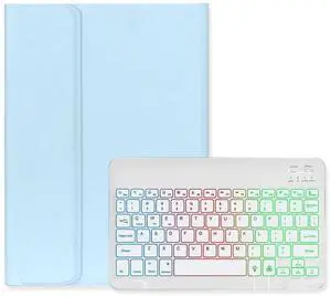 Disonbeir Backlit Keyboard Case for iPad 6th/5th Generation Air Air2 Pro 9.7 inch Case with 7-Color Rainbow Backlight Magnetic Detachable Keyboard Cute Candy Color,MistyBlue+White