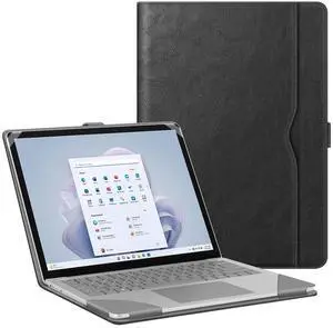 Fintie Sleeve Case for 13.8 Inch Microsoft Surface Laptop 7 (Model: 2036), 13.5 Inch Surface Laptop 6/5/4/3/2 (Model: 1951/1868/1958/1950/1867/1769) - Folio Book Cover with Large Pocket, Black