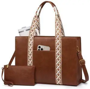 LOVEVOOK Laptop Tote Bag for Women,15.6 Inch Vintage Work Bag,Waterproof Leather Computer Briefcase 2PCs,Office Gifts for Women Teacher
