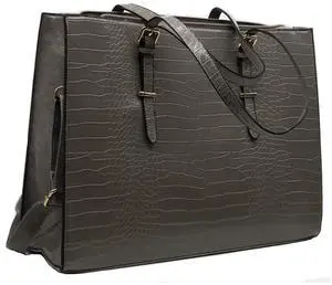 Amaze Professional Laptop Bags for Women 15.6 Inch Waterproof ^^ PU Leather Large Capacity Tote Bag for Ladies ^^ Designer Shoulder Briefcase for Work, Office & Business (Grey)