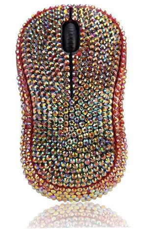 Brand Luxury Bling Dazzle Jeweled Rhinestone Crystal Wireless Mouse for Computers and Laptops Office - Gold Colorful