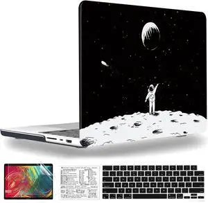 QCzyc Compatible with MacBook Pro 14 Inch Case 2021-2025 M5 M4 M3 M2 M1 A3434 A3185 A3112 A3401 A2992 A2918 A2779 A2442 Hard Plastic Shell &Keyboard Cover& Mac OS Keyboard Sticker (Astronaut&Moon 1)