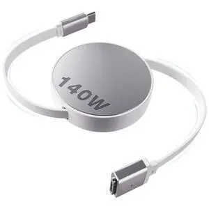 Hugener Magnetic 3 Retractable Cable USB-C 5.4FT for M4/M3/M2 MacBook Air & Pro Charger, 140W Safe 3 Cable for MacBook Air (13"/15" 2025/2024/2023/2022), Pro (16"/14" 2024/2023/2021), Silver