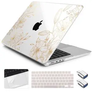 MEEgoodo Case for MacBook Pro 16 inch 2026 2024 2023 2021, Laptop Hard Shell Compatible with M5 M4 M3 M2 M1 Pro/Max Chip, Fit Model A3429/A3428/A3403/A3186/A2991/A2780/A2485, Drawn Golden Floral