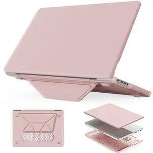 HXCASEAC Case Fits MacBook Pro 14 inch Case 2026 2025 2024 2023 2022 2021, Foldable Stand, Anti-Scratching Protective Cover (M5 M4 M3 M2 M1) A3434 A3401 A3112 A3185 A2918 A2992 A2442, PU Pink