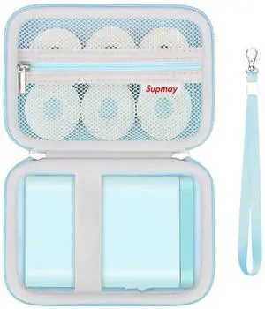 Supmay Hard Case Compatible with Nelko P21/for Phomemo D30/for SUPVAN E10/for NIIMBOT D11 Label Maker Machine, Portable Bluetooth Label Printer Storage Holder Bag with Mesh Pocket for Tapes, Blue