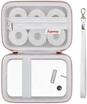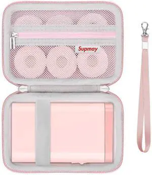 Supmay Hard Case Compatible with Nelko P21/for Phomemo D30/for SUPVAN E10/for NIIMBOT D11 Label Maker Machine, Portable Bluetooth Label Printer Storage Holder Bag with Mesh Pocket for Tapes, Pink