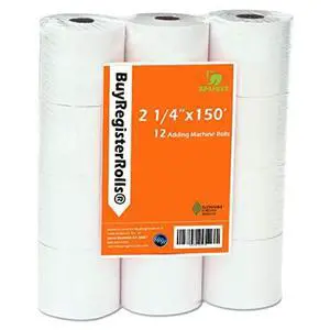 BuyRegisterRolls (12 Rolls) 2 1/4 x 150 ft White Adding Machine Tape Paper Rolls Premium One Ply Register/Adding Machine/Calculator Paper Rolls Printing Calculator 10 Key