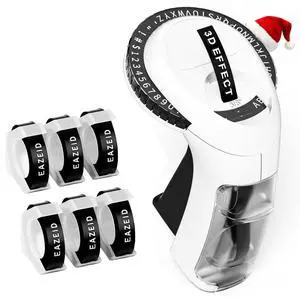EazeID Embossed Label Maker Machine with 6PK Tapes, Vintage 3D Embosser Labeler, Old School Handheld Label Printer, Portable Manual Embossing Label Maker for Home Office School