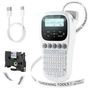 VolenGo Label Maker Machine with Tape, H1100 Label Maker Handheld Labeler with Backlit LCD One-Touch Key, 3B21Z Label Maker Tape 12mm 0.47 Laminated Black on White TZ Tape, 5PK