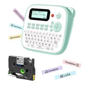 Vixic Label Makers, Label Maker Machine with-Tape 12mm 0.47 Laminated White, D210S Portable Label Maker with Keyboard, Labeling Machine with Multiple Fonts for Home Office Organization