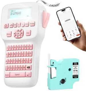 Label Maker Machine with-Tape, Handheld Label Maker with Backlit Screen & Keyboard, Portable Label Makers Rechargeable, LM1600 Bluetooth Labeler Labeling Machine for Home Office School Organization