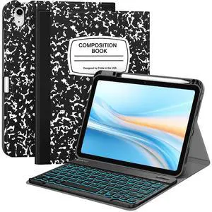 Fintie Backlit Keyboard Case for iPad (A16) 11th Generation 11 Inch 2025, iPad 10th Generation 10.9 Inch 2022 - Soft TPU Cover with 7 Color Backlight Detachable Bluetooth Keyboard, Composition Book