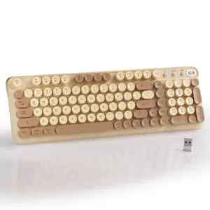 MPTOG Bluetooth Wireless Computer Keyboard, Colorful 99 Round Keys Retro Membrane Keyboard with Click Typing Feel, Power Switch, Ideal Gift for Office, Home (Milk Tea)