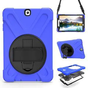 Shockproof Case for Samsung Galaxy Tab S2 9.7 2015 (SM-T810 T813 T815 T817 T818 T819),Portable Heavy Duty Tablet Cover with 360 Rotating Stand Handle Strap & Shoulder Belt Carrying Case (New Blue)