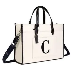 TOPDesign Initial Laptop Tote Bag for Women, Stylish Canvas Bag for 15.6 Inch Computer, Personalized Monogrammed Work Purse, Large Casual Business Briefcase, Office Handbag, Perfect Gifts for Her