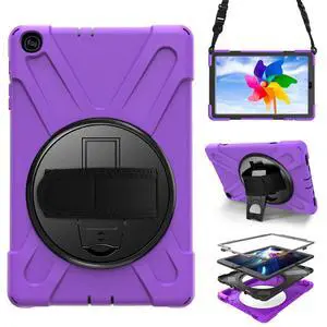 Case for Samsung Galaxy Tab A 10.1 2019 (SM-T510/T515/T517),Portable Heavy Duty Dropproof Protective Cover Case with 360 Rotating Stand,Handle & Shoulder Strap,Stylus Pen (New Purple)