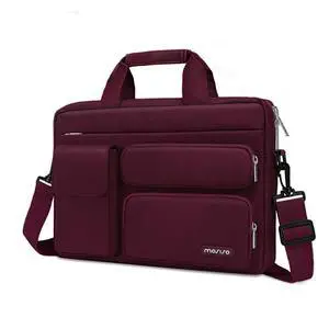 MOSISO Laptop Shoulder Bag 15.6 inch, 15-15.6 inch Computer Bag Compatible with MacBook Pro 16 inch, HP, Dell, Lenovo, Notebook with 2 Raised&1 Flapover&1 Horizontal Pocket&Handle&Belt, Wine Red