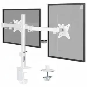 Mount-It! Dual Monitor Mount for Desk, Adjustable Tilt Swivel on Double Monitor Mounts for Screens up to 32, Dual Monitor Arms for 2 Monitors, VESA 75x75 and 100x100 C-clamp & Grommet in White