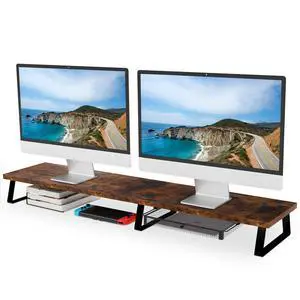 Aothia Dual Monitor Stand Riser - Metal Leg Monitor Stand with Drawer, Desk Shelf for PC, Laptop & Screen (Vintage)