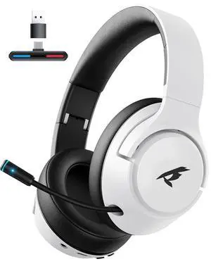 Wireless Gaming Headset for Nintendo SwitchOLEDLite,2.4Ghz USB & Type-C Bluetooth 5.4 Gaming Headphones with Noise Cancelling Microphone, 40Hr Battery, for PS5, PS4, PC, Mac White and Black