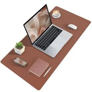 Wireless Charging Desk Mat with Desk Pad for Desktop Charging Large Mouse Pad Waterproof Leather Computer Mat Mouse Pad Non-Slip Protector on Top of Desks for Keyboard and Mouse (brown-l, 32*16inch)