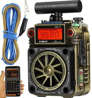 ZHIWHIS Shortwave Radio with Bluetooth and NOAA Alert, AM FM SW WB Small Radios with APP Control, Bass, SOS Alarm, Preset, T-Type Antenna, Emergency w/ 9.9 Ft Wire Antenna for Camping ZWS-777