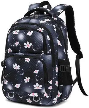 Leaper Stylish Floral Travel Backpack for Women Laptop Backpack Water-Resistant Bookbags College Bags Fits 15.6 Inch Laptop Black