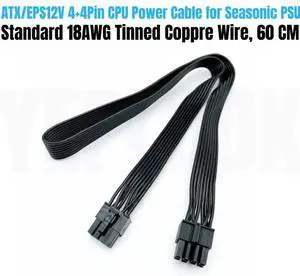 CPU Power Cable 8Pin to 4+4Pin EPS/ATX12V for Seasonic PRIME PX-1600, PX-1300, PX-1200, PX-1000 Platinum Modular Power, Flat Cable 18AWG 60CM