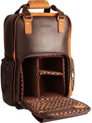 STAR VISTA Bernini Vintage Full Grain Leather Camera Backpack for DSLR/SLR, Camera Case for Photographers, with Tripod Holder, Fits 15.6" Laptop, Casual Outdoor Rucksack, YKK Zippers