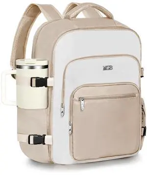 Travel Backpack for Women & Men, Large Carry On Personal Item Bag Airline Approved, Waterproof Traveling Overnight Bags, Gifts Laptop Backpack for Travelers College-Students Commuters (Beige/White)