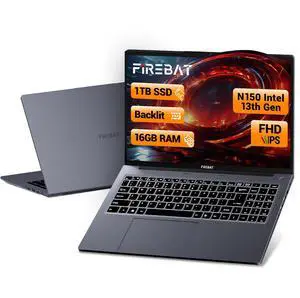 FIREBAT Laptop Computer 15.6in, Backlit Keyboard, 1TB SSD 16GB RAM, Quad-Core N150 3.6GHz, Webcam, Portable IPS FHD Notebook PC for Student/College/University/School/Business/Light-Games/HomeAT15