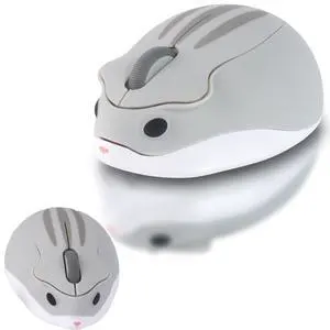 elec Space Cute Animal Hamster Shape Wireless Mouse - Silent, 3-Button Design for Laptop & PC; Includes Random Color Cable Clip - Perfect Computer Mouse-Grey