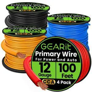 GEARit 12 Gauge Wire CCA 100 Ft Each-Black/Red/Blue/Yellow(400 Feet Total) 12 AWG Ground Power Wire Battery Cable for Automotive,Car Audio Speaker,Welding,Lighting,Trailer Harness,Electrical
