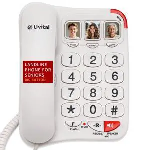Uvital Big Button Phone for Seniors - Simple Basic Telephone for Elderly, White Telephone Landline Phones, Home Phone for Seniors - Amplified Ringer ^^ Loud Speaker ^^ One-Touch Dial Photo Button
