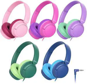 iClever Kids Wired Headphones for School Students K-12 & Teachers, Durable PP Material, Tangle Free, Kids Headphones with Cord Multiple Folding Options Suitable for School/Home/Travel, Bulk 5Pack