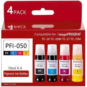 oranysty PFI-050 70ml Pigment Ink Tank Set Remanufactured for Canon PFI-050 PFI050 PFI 050 Ink Bottle Compatible with Canon imagePROGRAF TC-20 TC-20M Printer (BK C M Y) tc20m tc20 Ink Refills