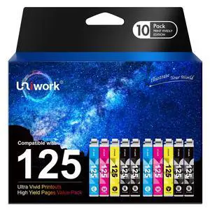 Uniwork Remanufactured Ink Cartridge Replacement for Epson 125 T125 use for NX125 NX127 NX130 NX230 NX420 NX530 NX625 Workforce 320 323 325 520 Printer Tray (4 Black 2 Cyan 2 Magenta 2 Yellow 10 Pack