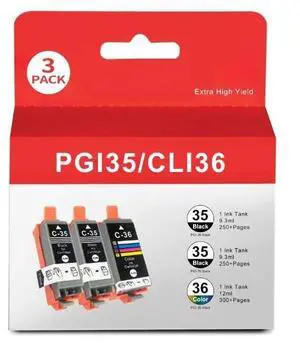 PGI-35 CLI-36 Ink Cartridges Compatible for Canon TR150 Ink Cartridges for 35 36 Ink Cartridge Replacement for Canon PIXMA TR150 TR160 TR152 IP100 IP110 MINI260 MINI320 Printer(2Black,1Color)