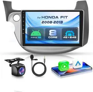 4G+64G with Qualcomm 8 Core Android 15 Car Stereo for Honda Fit 2008-2013 Carpaly Android Auto 10.1 Touch Screen Radio OTA Upgrade GPS, WiFi, Bluetooth 5.1, DSP,SWC, Backup Camera