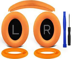 SOULWIT Replacement Kit for Bose QuietComfort 45 (QC45)/Quiet Comfort 35 (QC35, QC35II)/QC SE/QC Wireless Headphones, Ear Pads Cushions + Headband + Silicone Earpads Cover Protector - Orange