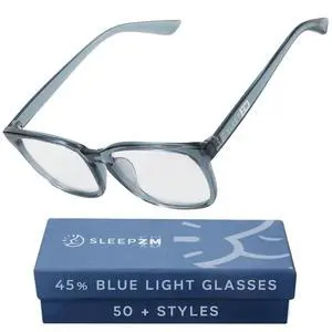 Sleep ZM 100% Blue Light Blocking Glasses for Women + Men - Better Sleep + Anti Eye Strain Protection - Computer Screens & Gaming - Translucent Blue Wayfarer - Daytime Clear Lens