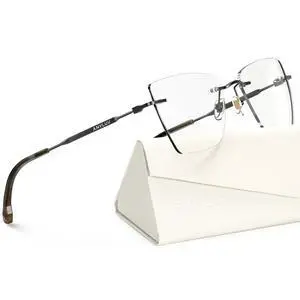 ANYLUV Rimless Cat Eye Blue Light Glasses Woman, Stylish Computer Blue Light Blocking Glasses with Lightweight Metal Temples
