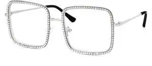 VOOGLAM Square Rhinestone Non Prescription Glasses with HD Clear Lenses for Women Silver Frame Kafele