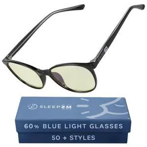 Sleep ZM 100% Blue Light Blocking Glasses for Women + Men - Better Sleep + Anti Eye Strain Protection - Computer Screens & Gaming - Translucent Blue Wayfarer - Daytime Clear Lens