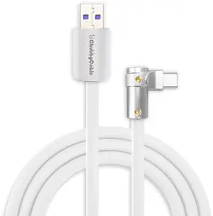 chubbycable FlexElbow 90 Degree 120W Fast Charging Cable Right Angle USB C Cable Silicone Charging Cord Compatible with iPhone 17-15 Series iPad, White, USB-A to Type-C, 4.9FT