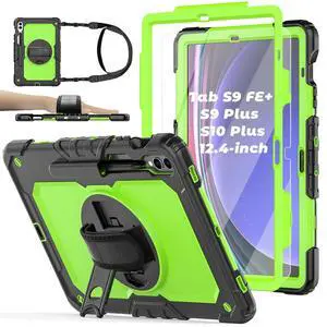 BASE MALL Case for Samsung Galaxy Tab S10 Plus/ S9 FE Plus/ S9 Plus 5G Tablet 12.4'', Shockproof Protective Cover with [Tempered Glass Screen Protector], Stand, Shoulder Strap & S Pen Holder (Green)